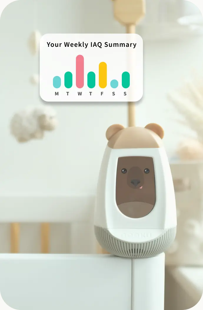 Create a safe, calming space from day one. nooku monitors nursery air, helping reduce respiratory triggers, support better sleep, and give you peace of mind during those precious early breaths.