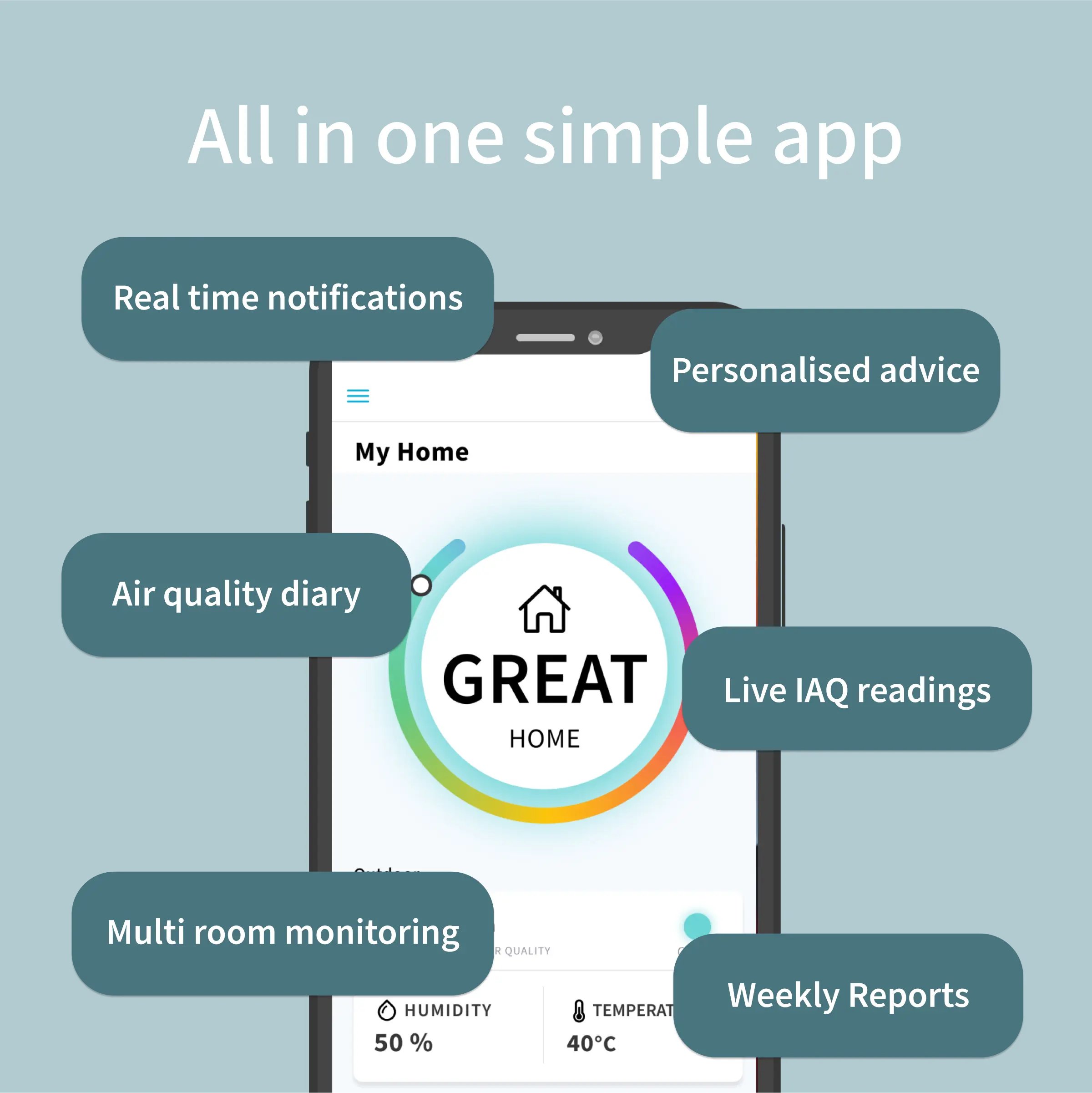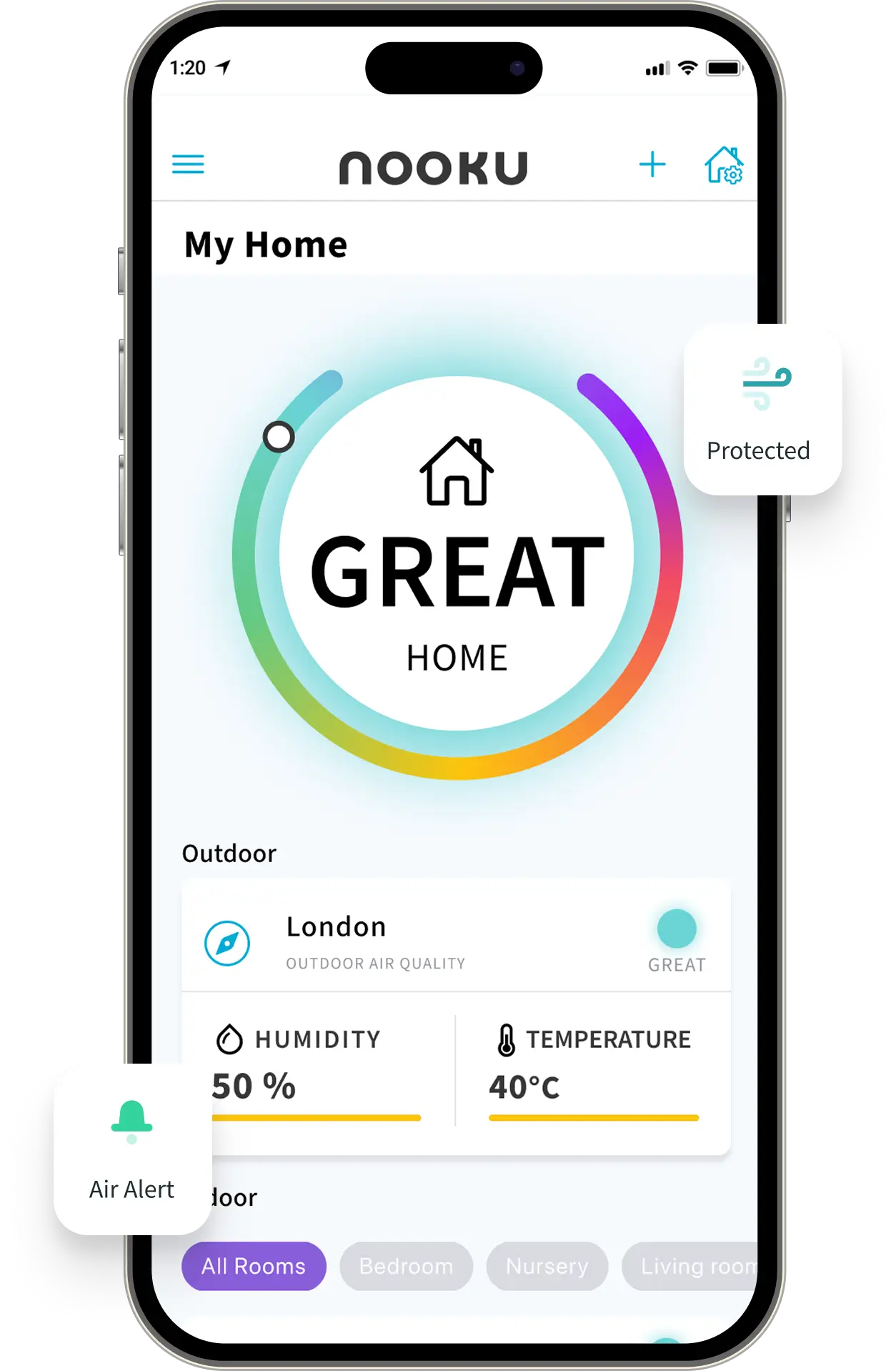 Breathe easy with our beautifully simple app, live air quality updates, smart tips, and peace of mind for the whole family, right in your pocket.